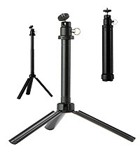 Die zweiteilige Mittelsäule ermöglicht eine Auszugshöhe von 37,5 Zentimeter und wird durch eine Drehbewegung am oberen Fixierring festgestellt. Mit dem unteren Fixierring arretiert der Fotograf dagegen die Beinspreizung, mit der eine minimale Auszugshöhe von nur vier Zentimetern erreicht wird – das ist ideal für Makroaufnahmen. Das Tischstativ ist mit einem Kugelkopf und rutschfesten Gummifüßen ausgestattet.