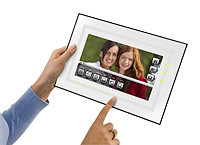Die in zwei Größen mit 8 und 10 Zoll Bilddiagonale angebotenen Bilderrahmen können die Fotos von einem eingebauten Speicher mit 512 Megabyte Kapazität abrufen oder von Speicherkarten lesen. Sie präsentieren die Daten im Format 16:9 und lassen sich durch zwei mitgelieferte Rahmenblenden der jeweiligen Wohnumgebung optisch anpassen.