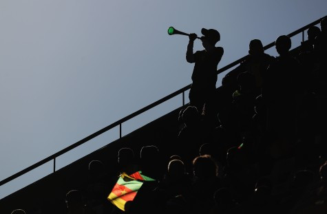 "Ich stand im Schatten der Tribüne mit einem Blick auf die Silhouetten der Fans und ihren Fahnen, durch die das Licht durchscheinte. Mit einer Canon 1D Mark IV und einer 400er Brennweite bei F2.8 ist dieses Foto entstanden, dessen starker Kontrast zwischen Himmel, dunklen Silhouetten der Menschen und den bunten Fahnen beeindruckend wirkte. Ich hatte den Verdacht, dass es nicht sehr lange dauern würde, bis ein Fan aus der Gruppe aufstehen und mit einer Vuvuzela tröten würde - und Sekunden später geschah genau das."