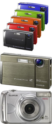 Das neue Top-Modell der Z-Serie, die Z100fd, vereint wieder eine Reihe von Funktionen, die auch die neuesten Kameras der F-Serie auszeichnen. Zwar gibt es Super CCD Bildsensor, sondern nur einen nicht weiter benannten 8-Megapixel-CCD, allerdings dürfte bei der Nutzung von ISO-Empfindlichkeiten bis 1.600 die viel gelobte Real Photo Technology zur Minderung des Bildrauschens zum Einsatz kommen. Außerdem ist der Bildsensor mit dem CCD-Shift-Prinzip ausgerüstet, fängt als Verwacklungen durch die Fotografenhand mechanisch ab. Teil des winzigen Fotoapparats ist auch die verbesserte Gesichtserkennung, ein mit 230.000 Pixel hoch auflösender 2,7-Zoll-Monitor sowie 16 Aufnahmeprogramme für unterschiedliche Lichtsituationen. Last but noch least: SDHC ist neben xD und SD auch hier ein gern gesehenes Speicherkarten-Format.