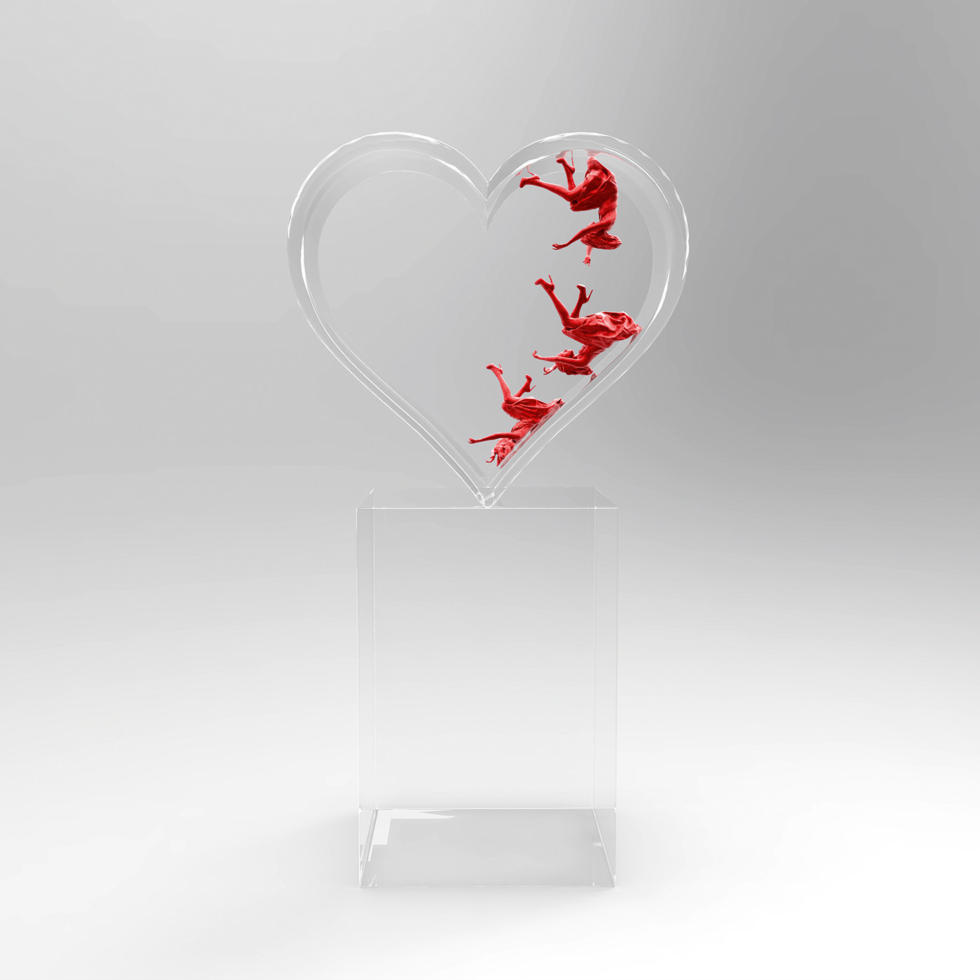 Konsequent setzte Drebin seinen typischen Bildstil mit anderen Materialien um, die bereits selbst mit schönem Schein auftrumpfen: Lichtkästen, Neon-Installationen und Ätzarbeiten auf Kristallglas. In jüngster Zeit kamen Foto-Skulpturen hinzu, für die der Fotograf winzige Schönheiten in detailreiche 3D-Kunstwerke einbettet.