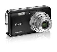 Dabei stehen zwei besonders elegante Produkte der V-Serie im Vordergrund. Die EasyShare V803 erreicht eine Auflösung von acht Megapixel und arbeitet mit einem dreifachen Zoomobjektiv. Auch die EasyShare V1003 setzt diese Optik ein, nutzt aber einen Bildaufnahmesensor mit zehn Megapixel. Die sonstigen technischen Daten sind weitgehend identisch: Ein 2,5 Zoll großer Monitor mit 150.000 Pixel Auflösung dient als elektronischer Sucher, Kontrollbildschirm und Steuerzentrale. Die Bildkapazität mit einem serienmäßig 32 Megabyte großen internen Speicher lässt sich dank eines SD-Kartenlaufwerks optional mit entsprechenden Karten erweitern, und die maximale Lichtempfindlichkeit beider Modelle beträgt für diese Kameraklasse ungewöhnlich hohe ISO 1.600. 22 Motivprogramme inklusive einer Panoramafunktion erleichtern die Bedienung der in verschiedenen Farben erhältlichen V803 und V1003. Die Stromversorgung erfolgt mit einem Lithium-Ionen-Akku.