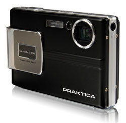 Mit allerlei modernen Merkmalen ausgestattet ist die neue Praktica Luxmedia 7403. Bei diesem Modell handelt es sich um eine Digitalkamera der Ultrakompakt-Klasse, die nicht nur hinsichtlich des Designs Begehrlichkeiten weckt. Das Objektiv dieses Modells ist quer ins Chassis eingelassen und wird durch ein Prisma am Gehäuse-eingang mit Licht gefüttert. Aufgrund dieser Konstruktion ist die Lichtstärke der Optik nicht ganz so gut wie bei anderen Kompaktkameras – f3,5 im Weitwinkel und f4,5 bei maximaler Teleeinstellung. Immerhin gibt es dreifachen optischen Zoom bei ins Kleinbild-Format umgerechneten Brennweiten von 37 bis 111 Millimetern. Als Bildsensor kommt eine CCD-Einheit zum Einsatz, deren Auflösung bei rund sieben Megapixel liegt. Damit sind hübsche Ausdrucke bis zum A3-Format machbar. Auch Videoclips kann man mit der Luxmedia 7403 aufnehmen, deren Auflösung liegt maximal bei 640 mal 480 Pixel mit 30 Bildern pro Sekunde inklusive Ton. Der interne Speicher von 32 Megabyte kann durch die Verwendung von SecureDigital-Speicherkarten erweitert werden. SDHC-Medien werden allerdings nicht unterstützt. Der Preis liegt bei zirka 200 Euro.